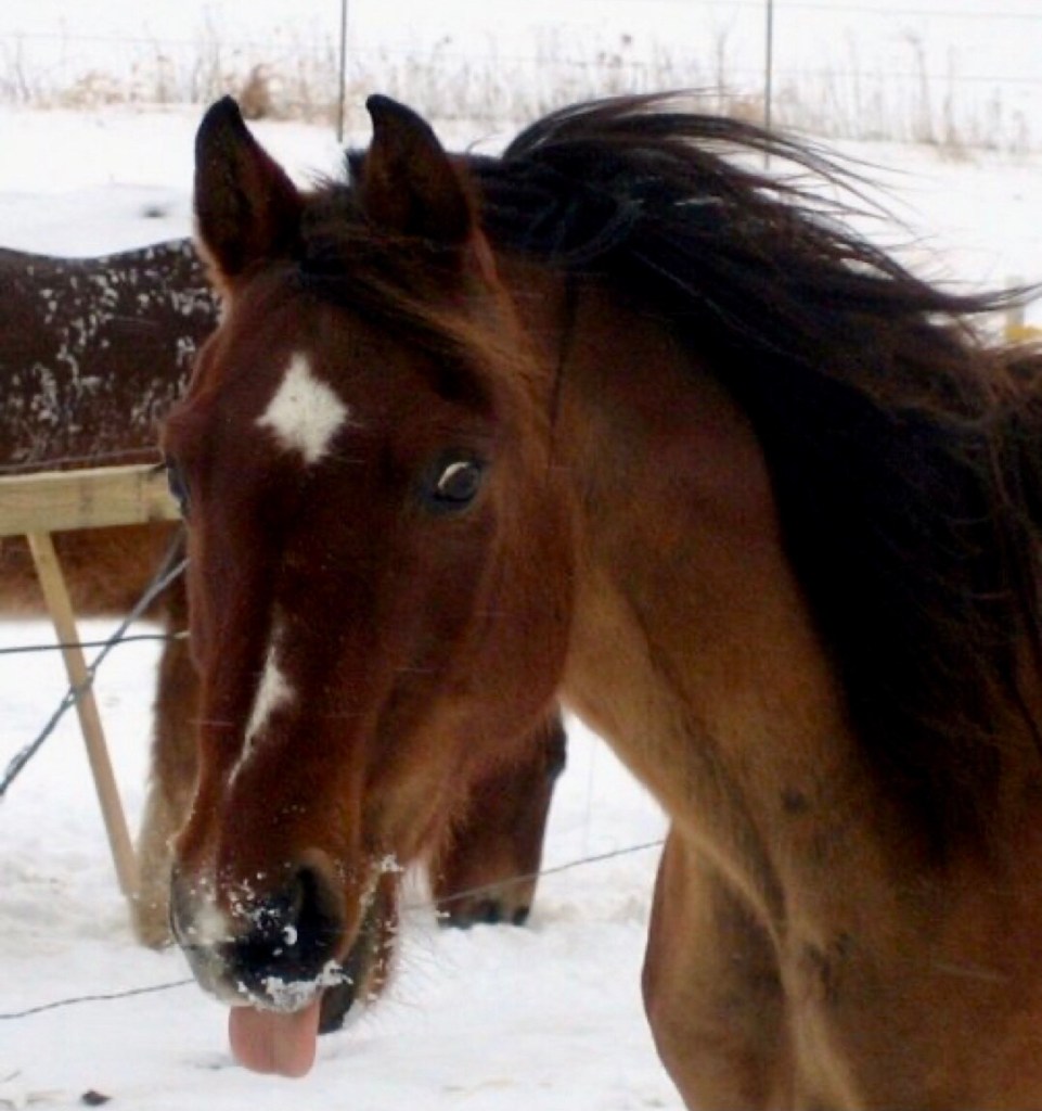 I will never forget meeting Odyssey, he was a golden bay in color, but his fur was patchy and he was totally bald on his chest and only had patches of hair on his neck. He also was missing his two front teeth, and when he nickered to us, he had a bit of a lisp. He was a gentleman on the ground and rock solid under saddle. We bought him to be our “extra” horse, and for John to ride out on the trails.