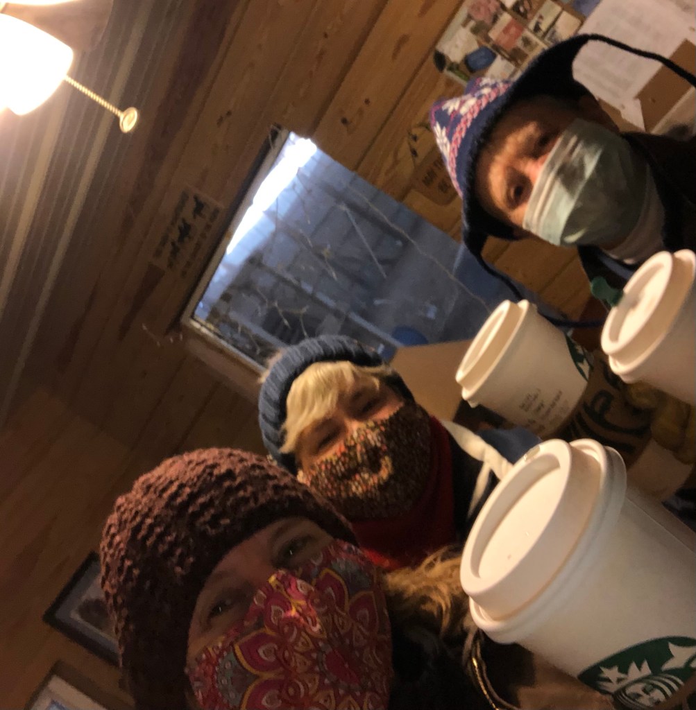 Kristin shows up with our Starbucks order and we hurry to the office for a little break and warmth. Ahhh, my heart smiles as we sip our apple cider that Karen sent us. It’s nice to be appreciated like that and it lifts our spirits. We smile at each other as we sip our warm treat. We chit chat a bit. Discuss the horses and any changes. We talk about the blankets and who may need them and who doesn’t any more. We make our game plan then carry on. It’s so much easier when you have good friends to talk to and share with. I walk out of the office with a lighter step as we banter with each other and continue with chores. I actually find myself smiling under my mask.