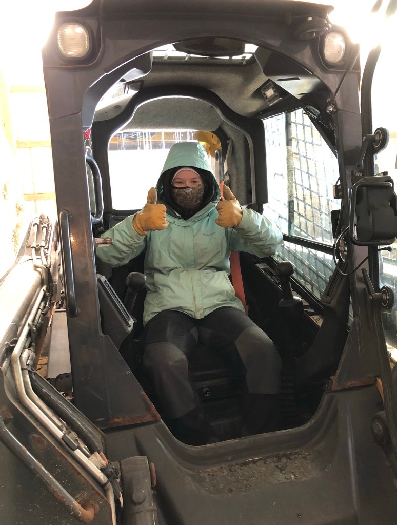 As we finish up feeding we check the hay levels in the feeders and decide to fill them all up for the weekend. That’s five, 900 pound bales we have to take out with the skidsteer. Joanie and Kristin chip away at the big barn door to open it and I finish sweeping the barn and office. Joanie goes to start the skidsteer and it doesn’t start. It doesn’t even turn over. My heart sinks and I panic a little bit. The horses have to have hay to stay warm, they can’t handle the cold without it. I don’t understand because we keep it plugged in at all times in cold weather to prevent this from happening! I open up the door to get access to the engine and can’t find the battery. Grrr, it’s so frustrating, why isn’t the battery right there so we can see it? Joanie suggests we take the side panels off and look there. The skidsteer is parked so close to the bales that I can’t get to the right side, but I can the left. I peel my outer gloves off for better dexterity, and the cold quickly attacks my hands. I get the left panel off, and of course no battery. I go to the right side and squeeze my hand between the hay bale and skidsteer and pry the panel off with numb hands that feel like wooden blocks. Sure enough, the battery is on that side and I bonk my head on the skidsteer as I try to see the terminals to attach the battery charger. I back off and try to see it from the top and I must have gotten my face too close to the metal bar on the back because face mask gets stuck. I peel my face away from the cold metal as tears of frustration well up in my eyes.